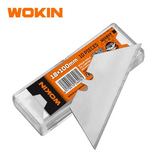 Bộ 10 lưỡi dao WOKIN 301819 là bộ lưỡi dao chuyên dùng cho các loại dao rọc giấy hiện đại, mà mỗi người thợ đều nên sở hữu cho mình một bộ dự phòng, được sử dụng nhiều trong các nhà máy xí nghiệp, công trình xây dựng, thiết kế….