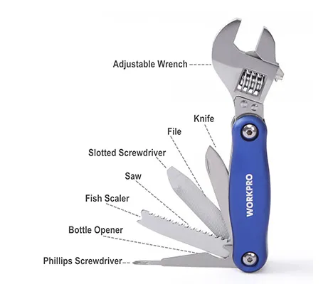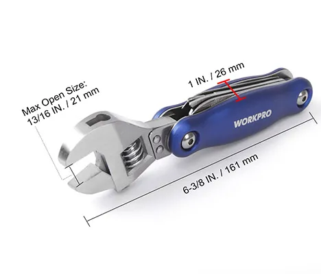 Bộ cờ lê và dụng cụ đa năng 8 in 1 WORKPRO W014011 bao gồm:
