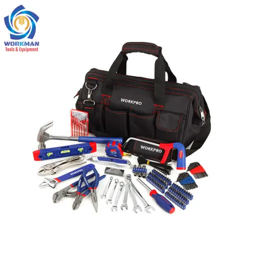 Bộ dụng cụ đa năng 156 chi tiết WORKPRO W009036 chi tiết bao gồm các phẩm thông dụng, cơ bản như: kìm mũi dài, kìm cắt, mỏ lết, tua vít, dao rọc cáp, thước cuộn, thước thủy, búa, đầu vít…