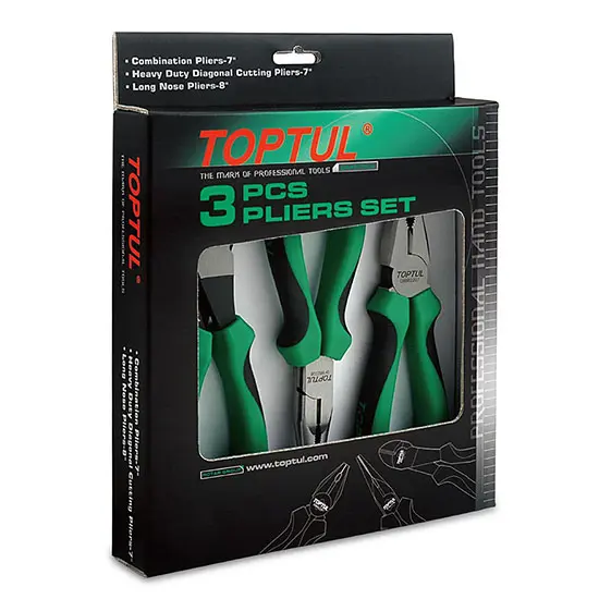 • Bộ kìm 3 món Toptul GAAE0307. Kìm bằng 8”, kìm cắt 8”, kìm nhọn 8”