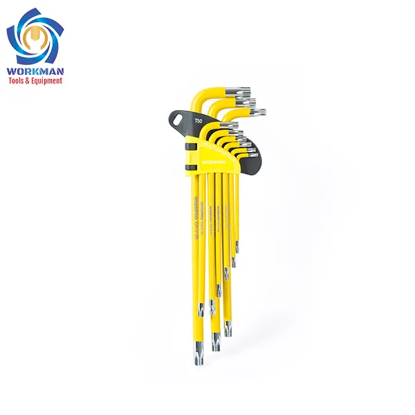 Bộ lục giác dài đầu sao 9 chi tiết WORKPRO W022012 với 9 chi tiết cùng nhiều kích dùng để mở các chi tiết lục giác chìm hiệu quả. Phù hợp với môi trường sửa chữa, lắp đặt ô tô – xe máy, xưởng cơ khí,…