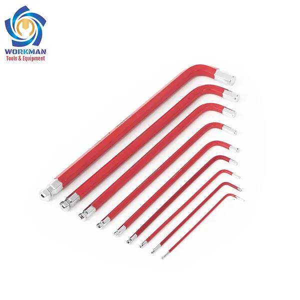 Bộ lục giác đầu bi WORKPRO W022015 là bộ dụng cụ bao gồm 09 lục giác đầu bi dài kích thước khác nhau. Các chi tiết đều được tinh luyện từ chất liệu thép hợp kim siêu bền, khả năng chịu nhiệt, chịu lực tốt. Sản phẩm ứng dụng để tháo/ vặn các bu-lông, ốc vít có đầu dạng lục giác