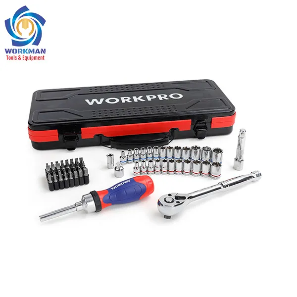 Bộ tuýp 62 chi tiết WORKPRO W003050, 1/4 và 3/8 inch bao gồm 62 món các loại hệ inch và hệ mét phù hợp sửa chữa các chi tiết từ đơn giản đến các máy móc nhập khẩu hiện đại nhất
