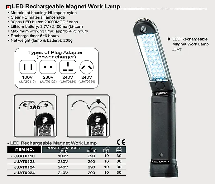 Thông số kỹ thuật Đèn LED soi sửa chữa 100V Toptul JJAT0110