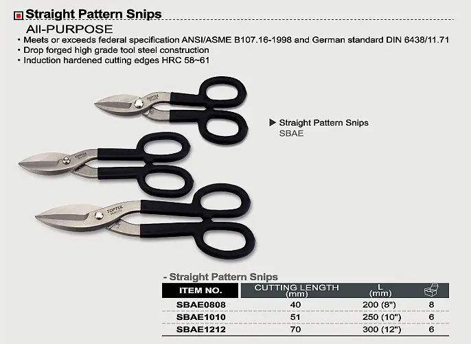 - Dễ dàng sử dụng: Kéo cắt kim loại 200mm Toptul SBAE0808 nhẹ và dễ thao tác, giúp người dùng có thể cắt nhanh chóng và chính xác, thích hợp cho cả người dùng chuyên nghiệp lẫn không chuyên.
