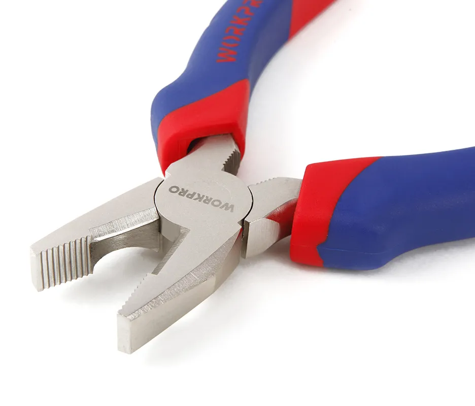- Kìm mũi bằng WORKPRO W031005 là dụng cụ chuyên dụng. Sản phẩm được tinh luyện từ chất liệu thép chrome-vanadi. Bên ngoài mạ crom bóng, khả năng chống gỉ sét, ăn mòn. Mũi kìm thiết kế dáng bằng, bên trong có răng cưa. Giúp tăng độ ma sát, tiết diện tiếp xúc chi tiết. Đồng thời giữ chi tiết chắc chắn, chính xác vị trí mong muốn.